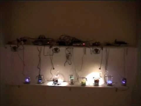 Mini TVs, mini projectors, 4 channel looped video with sound, ferrofluid, KY Jelly, neodymium magnets, USB fans, rotating crystal display units.